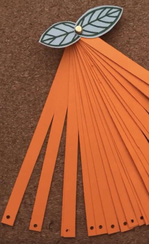 Commencez par découper dans votre feuille « Orange » : 20 bandes de 1,5 x 20 cm