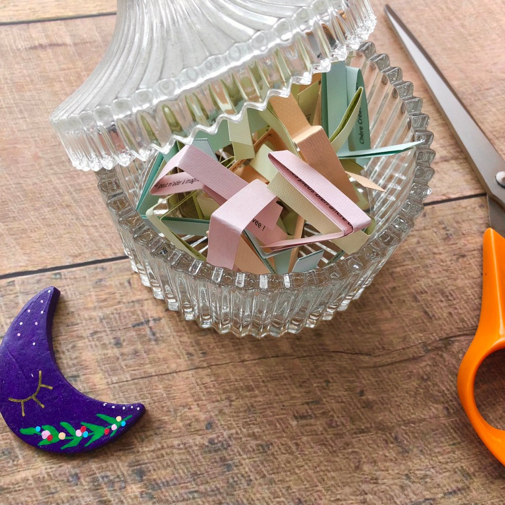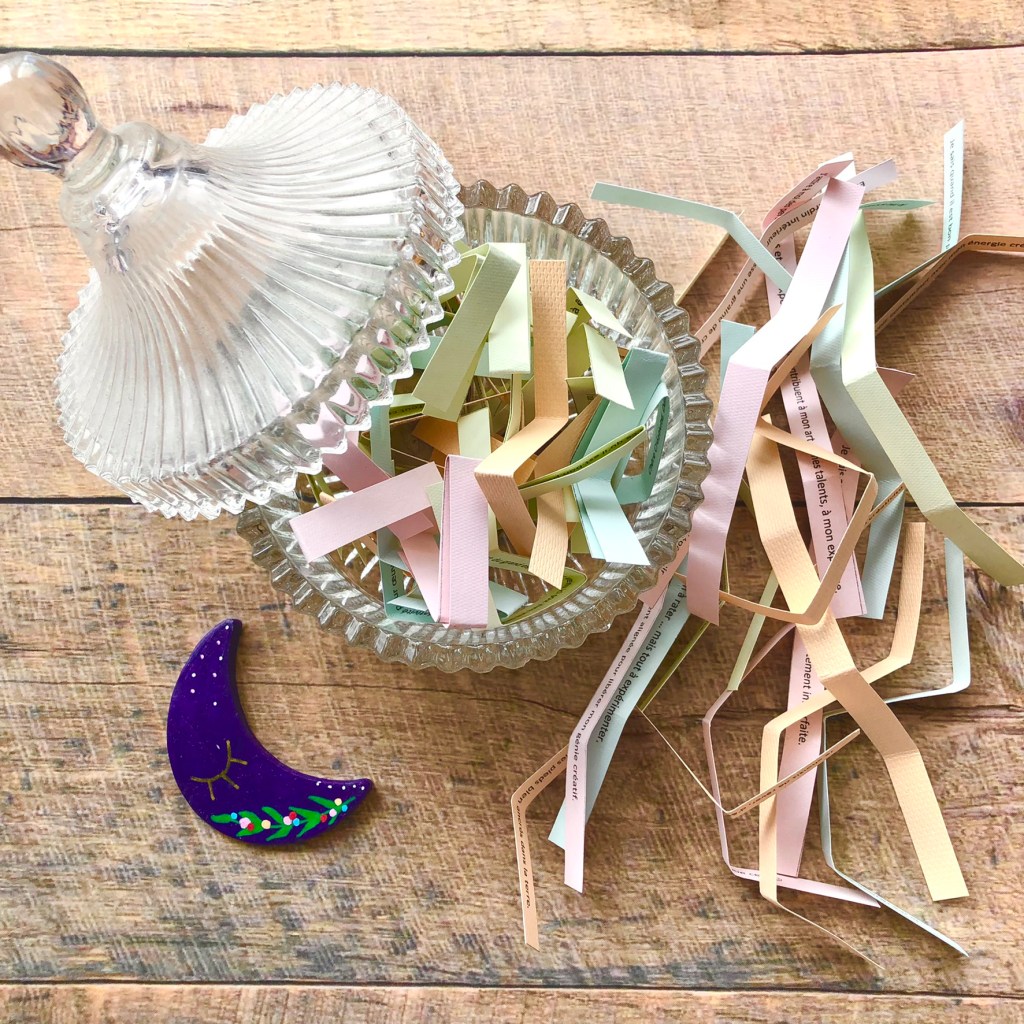 Pour vous accompagner subtilement tout au long des 365 nouvelles journées à venir, je vous invite à créer votre Pot magique dans lequel vous pourrez tirer une affirmation positive chaque semaine.