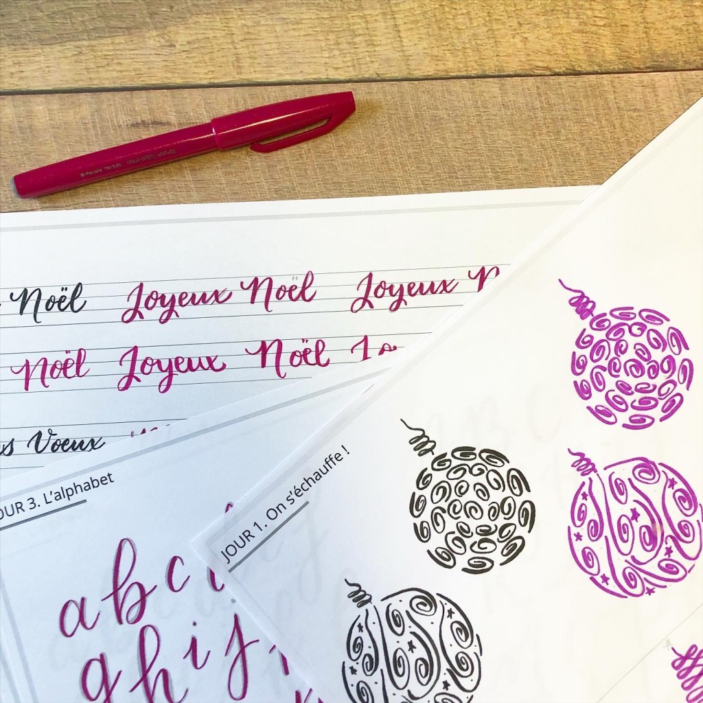 Tout a commencé en Décembre dernier, je suivais depuis peu le compte Instagram de Noëlie pour la beauté de ses créations après avoir écouté le Podcast où elle raconte son parcours au micro de Mélanie du Podcast Fait-Main et je me suis inscrite à son stage gratuit en ligne pour s’initier à la calligraphie avec comme thème Noël et les fêtes de fin d’année.